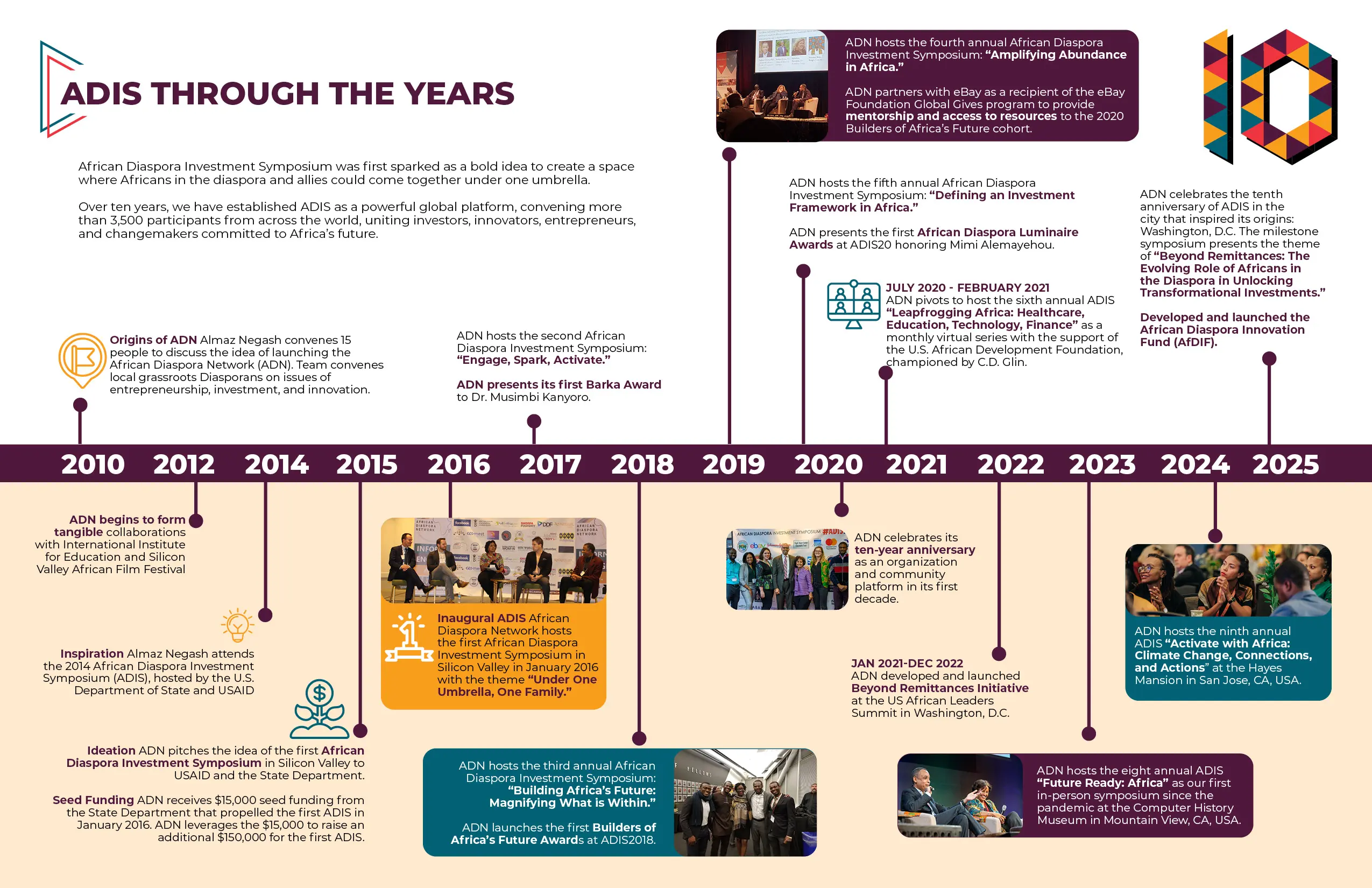ADIS offers a unique opportunity to experience the dynamism and ingenuity of the Diaspora and their friends to affect positive socio-economic change on the continent. The gathering is intentionally organized to inspire, inform and foster collaborations between participants.